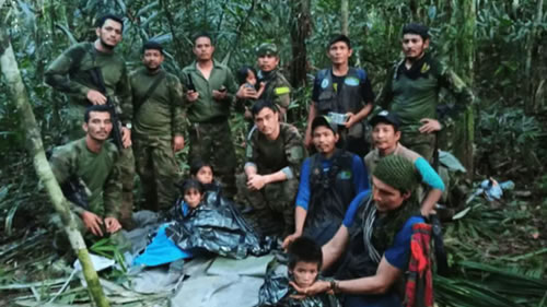 4名幸存儿童年龄分别为13岁、9岁、4岁,以及一名11个月大的婴儿。他们在哥伦比亚南部卡克塔州和瓜维亚雷州交界附近被军方救出,那里靠近坠机地点。