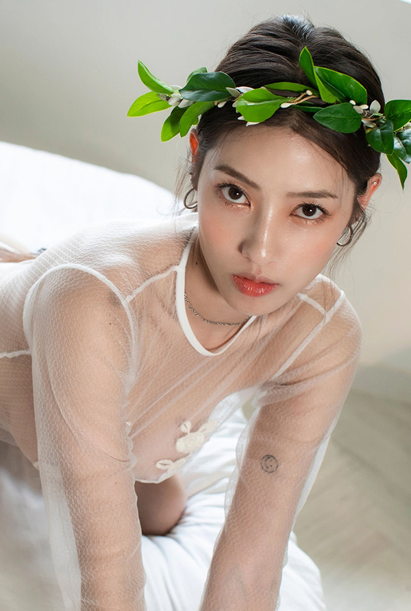 端庄大气的美女清新花环透视白纱玉兔诱惑