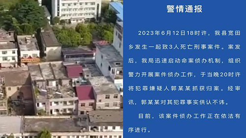 7月1日,江西于都县公安局发布一则警情通报,6月12日18时许,该县宽田乡发生一起致3人死亡刑事案件。案发后,当地警方于当日20时许将犯罪嫌疑人郭某某抓获归案。7月2日上午,一知情人士向新京报记者透露,3名死者均为孩童,最大的8岁,最小的9个月,父母在外打工,孩子们平时由奶奶照顾,嫌疑人郭某某因邻里矛盾趁奶奶外出时将3个孩子杀害。日前,3名被害人已火化,当地政府已成立工作专班安抚家属,并帮助协调法律援助及其他善后事宜。