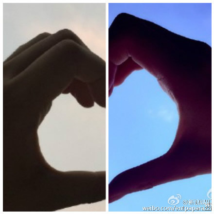陈晓和陈妍希今日公开了恋情,昨日两人被卓伟爆料同宿一晚,今日陈晓和陈妍希一人比划出一个爱心,估计此时他俩不在一块儿,所以没法同框秀恩爱,但是这比划爱心的浪漫秀恩爱手法也很虐狗!陈晓和陈妍希公开恋情,大批的赵丽颖和陈晓的CP粉还没有赶赴战场,所以现在两人被祝福的言论居多。