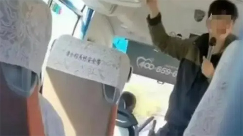 视频画面显示,一名导游在大巴车前排手持话筒向游客们放狠话称:游客们即使上车了也走不了,这辆大巴车自己说了算,现在自己说车坏了车马上就坏,说车好了车马上就好,自己不上车游客们上车没有任何意义,进去就大大方方的挑,挑完看完该买就买,人手一个小袋子就可以上车走。