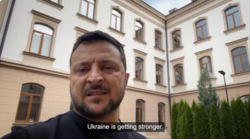 泽连斯基表示,今天是俄罗斯所谓的对乌克兰特别军事行动的第522天,俄罗斯的领导人曾经以为这场行动只会持续几个星期,“但战争会逐渐回到俄罗斯的领土上,回到他们那些象征性的中心和军事基地,这是一个不可避免的、自然而然且绝对公平的过程”。