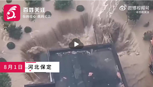 中青报·中青网记者了解到,水尚仁佳小区紧邻北拒马河,在河道的北岸,距离河道不足100米。赵女士介绍说,所在小区从昨天晚上开始涨水,目前小区内已经一片汪洋,汽车都被淹没了。通过居民提供的视频,记者看到,小区3号楼前的地库已经塌陷,雨水源源不断地向里面灌。