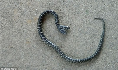 一位美国田纳西州的园丁在劳作时,意外发现一条有两个头的蛇。