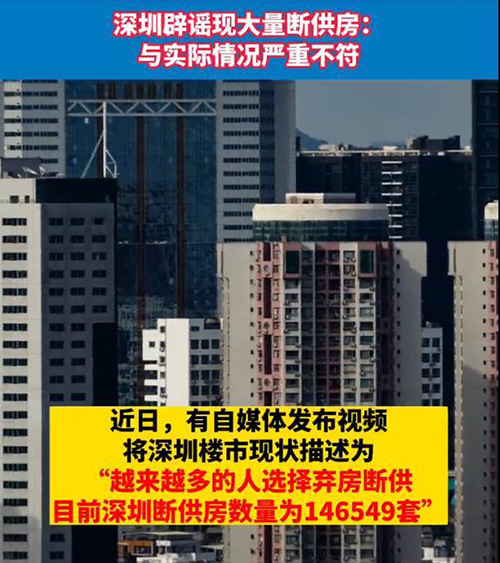 近日,有自媒体发布视频,将深圳楼市现状描述为“越来越多的人选择弃房断供,目前深圳断供房数量为146549套”。针对此传言,深圳金融监管部门回应:视频内容严重失实,纯属谣言。