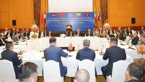 8月15日至16日,中国公安部、泰国警察总署、缅甸警察总部、老挝公安部在泰国清迈联合举行针对本区域赌诈及衍生的人口贩运、绑架、非法拘禁等犯罪的专项合作打击行动启动会(下图)。