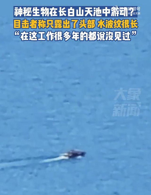 原标题:目击者回应长白山天池现神秘生物:它只露出了头部 水波纹很长