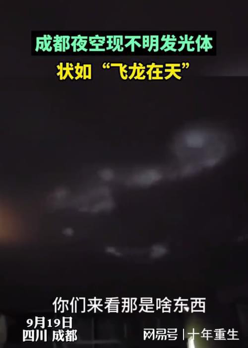 其次, 在9月19日,成都淮口宝龙新城附近的一位网友拍摄到了夜空中出现的不明发光体,形状酷似飞龙。这一新的观测再次引发了网友们的热议。加上之前的情况,成都成为了不明发光物的热门地点之一。