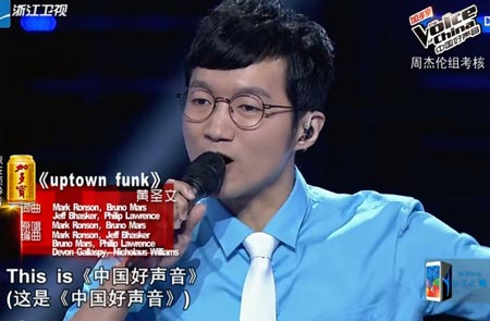 中国好声音黄圣文《Uptown Funk》现场视频