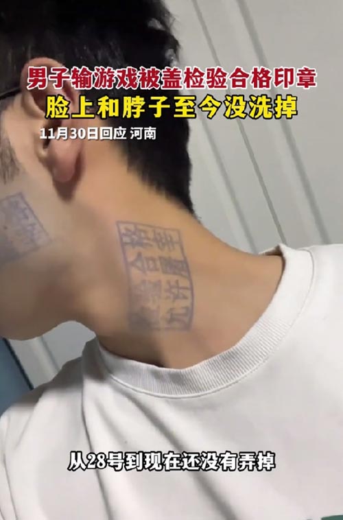 快科技11月30日消息,据国内媒体报道称,近日一男子跟朋友玩游戏,结果输了被盖章了。