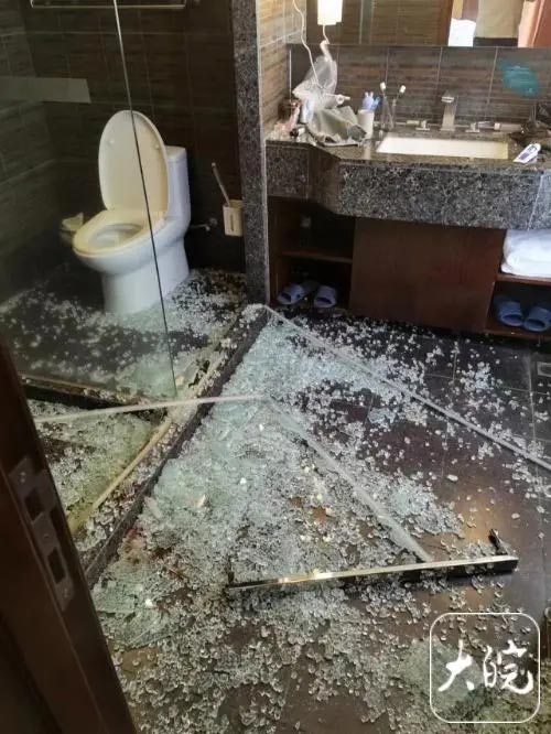 酒店浴室玻璃门炸裂 妻子被玻璃多处划伤