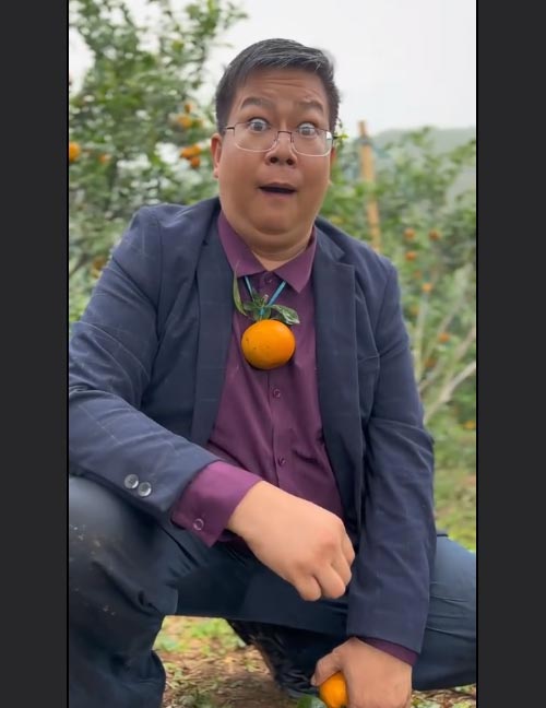 橘长为了宣传沃柑也是拼了,用手扣一点土就往嘴里送,吃完还不忘来一句“牛圈有机肥,成就生态品质。”