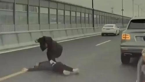 孙子见:当时我是去拜访一位客户,然后开车行驶到那个钱塘高架桥的时候,我就看见中间跟右侧车道都已经堵死了,然后我就只能开左侧车道。我一开过去,就发现那个伤者躺在地上,另一个人还在不停地打他,当时(受害人)还是挺危险,因为他那个身体是躺在中间的车道上,他的头部已经搭到左侧车道了。在当时那种情况下,因为路上的司机都着急离开那个堵塞区域,左侧车道车速反而不慢,就很危险,我赶紧第一时间把车开到了他们两个后面,然后把车稍微向左侧倾斜了一下。这样的话,左侧车道(的其他车辆)看见我这边有这么一辆车挡在这里,开车速度可能就会减缓一些,然后我就下车去阻止那个打人的车主。