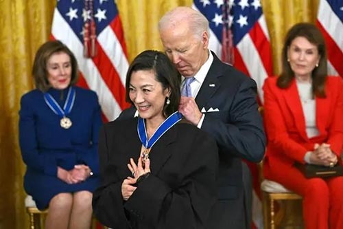 原标题:外媒:拜登向杨紫琼等人授予“总统自由勋章”,还把杨紫琼名字说错了