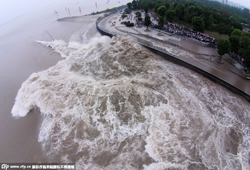 2015年9月28日,杭州,受超强台风“杜鹃”影响,钱塘江迎来天文大潮期。