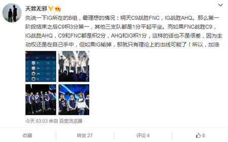 从CGA编辑天曾的分析中可以看出,IG只要拿下今天的比赛胜利还是有望从小组赛中出线,加油IG战队!两年的艰辛与磨难才再次站到S5英雄联盟总决赛的舞台上,如今还没能向世人展示强大的实力,怎可惋惜退场?竭尽全力去拼搏吧,加油IG战队!