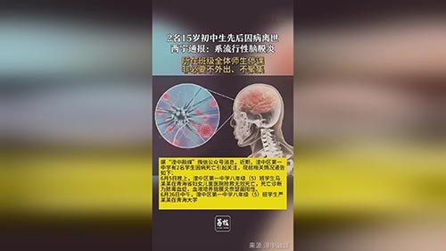 7月3日,西宁市湟中区教育局、卫生健康局发布关于湟中区第一中学2名学生因病死亡相关情况的通告,称2名学生均为流行性脑脊髓膜炎,两个病例间隔跨度为20天。相关专家介绍,流脑的症状像感冒,常表现为发热、头痛、呕吐、哭闹等,容易被误诊,具有发病急、传染性强、病死率高等特点。