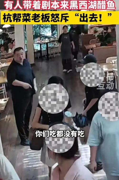 为了不让带剧本的拍摄团队抹黑“西湖醋鱼”,8月1日,杭州一餐馆老板赶走了这伙人,按他的说法,菜都没吃,就准备照剧本上“西湖醋鱼真难吃的”的设定来拍短剧了。