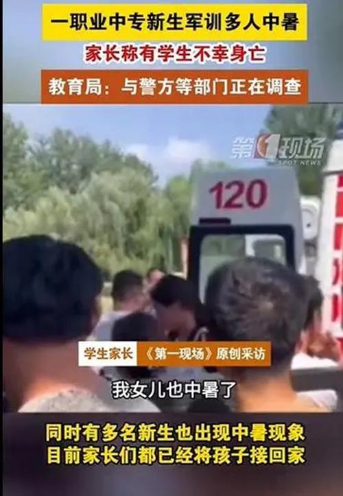 另据@第一现场报道,家长称,单县职业中专一女生军训时突发症状,抢救无效死亡,疑似中暑导致,同时有多名新生也出现中暑现象,目前家长们都已经将孩子接回家。单县教育局回应称,教育局领导和警方都在调查,暂无定论,具体返校日期需要等通知。
