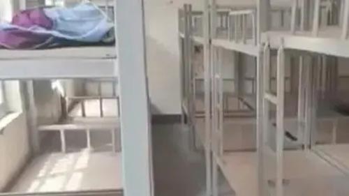 根据家长拍摄的视频显示,这个房间如果作为正常的学生宿舍,空间其实并不小,住个十个八个人都是相当富裕,可这一间宿舍里,竟然放了24张上下铺的床,这样一来就显得相当拥挤,而且都是两张床并排挨着的