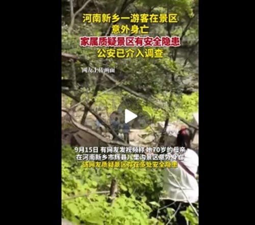 原标题:网友称母亲在景区意外身亡 河南辉县:在景区外4公里发现遗体