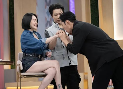 不重要,反正现场的助理派翠克一下秒懂,赶紧给小S安排猛男福利,让小S各种摸胸肌、摸大腿,还有金镇友把腿抬到小s肩膀上,让小S满脸通红,最后给对方道谢,说“真的太爽了”!