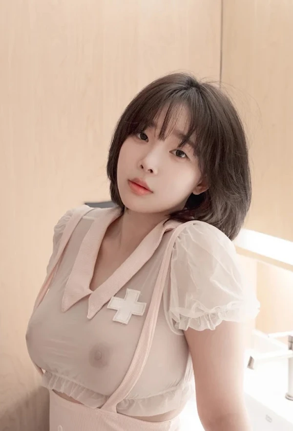 波霸美女Bokbunjajoo开胸粉色连体衣湿身