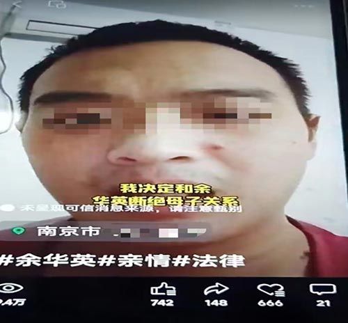 近期,南京公安机关网安部门工作中发现,网民“奶声奶气的咖啡”(又名“魔鬼苏慧伦”)自称是余华英的儿子,在多个社交平台相继发布数条“我就是余华英当年5000元卖出的儿子,希望大家能原谅我的母亲,让我与母亲重逢”“余华英没文化,当年肯定是因为生活条件不好,才把我卖掉”“每个人都没法选择自己的父母,我决定和余华英断绝母子关系,此生不复相见”“余华英要被判决了,希望大家能原谅我的母亲”的视频,引发大量网民关注、议论。