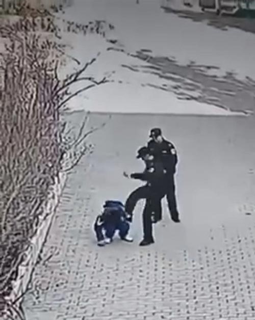 在网民发布的一段视频中,两名穿着制服的男子在路上行走,一名男孩向他们迎面走来。双方相遇后,两名穿着制服的男子拦住那名男孩,其中一人扇了男孩的脸,随后有踢踹男孩的动作。男孩被打倒在地后,打人者拽了男孩的头发,将其拉起来后又踢了男孩,还用膝盖顶了男孩的头部。
