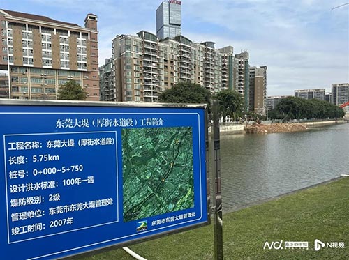 2007年竣工的百年一遇洪水设计标准堤坝,在今年内发生部分坍塌。今年10月27日下午,位于南城街道金丰路的东莞大堤(厚街水道段)发生部分坍塌。南城方面介绍,现场无人员伤亡。事发后,南城方面已安排施工队伍先对堤防塌方段进行钢板桩支护,避免进一步扩大塌方范围。(据12月17日南方都市报报道)