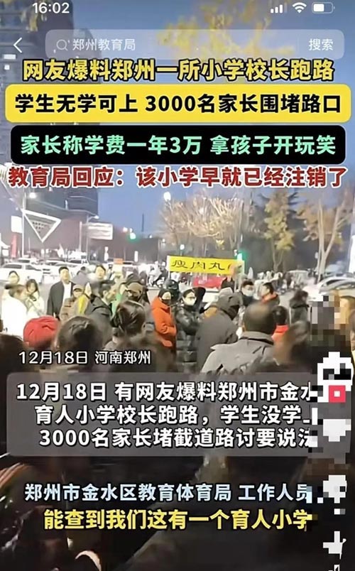 据读特新闻此前报道,近日,有多位郑州当地家长在社交平台上发布信息,称郑州经开区育人学校跑路,学生无学可上。