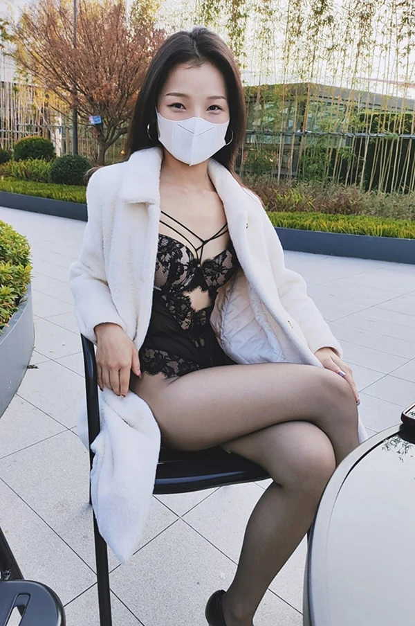 清新可爱美女Rua红内内皮大衣户外无圣光