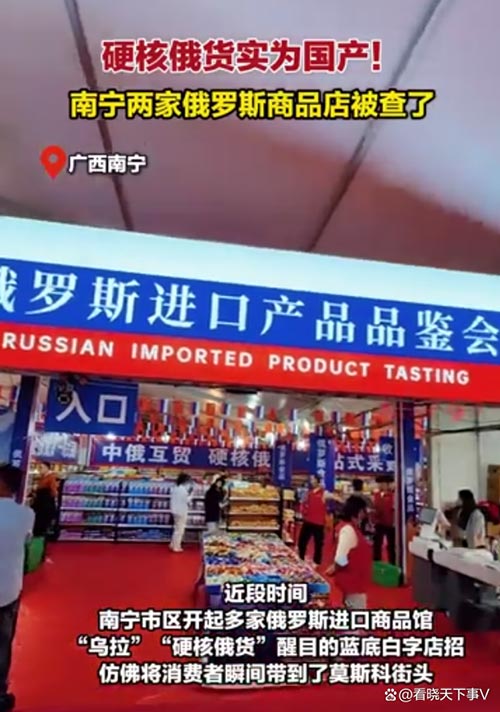 终于出手了!广西南宁,两家俄罗斯商品馆被查,而所谓的俄罗斯商品,都是产自黑龙江、山东、内蒙古等地,除了名字中有俄罗斯,其他的毫无关联,看来这里面的秘密到底还是藏不住了