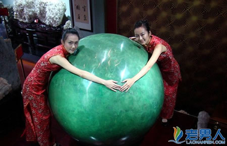 中国奇石珠宝协会副会长郑宝石介绍说,展厅内最吸引眼球的夜明珠,来自中国内蒙古,材质以萤石矿物为主,发现时是不规则形状,用3年时间加工而成现形,在关闭光源的黑暗环境中能发出晶莹透亮的光芒。业内专家估计价值22亿元人民币。