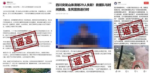 经州、县应急管理、公安等部门调查核实,凉山州今年以来从未发生山体滑坡等灾害致人员失联或死亡事件,此类贴文均系嫁接旧闻关联外地灾害事件恶意炒作,均为不实信息,系谣言。公安机关正依法依规对相关谣言案件进行调查处理。