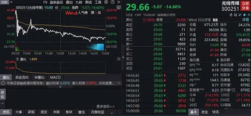光线传媒市值一天蒸发近149亿元