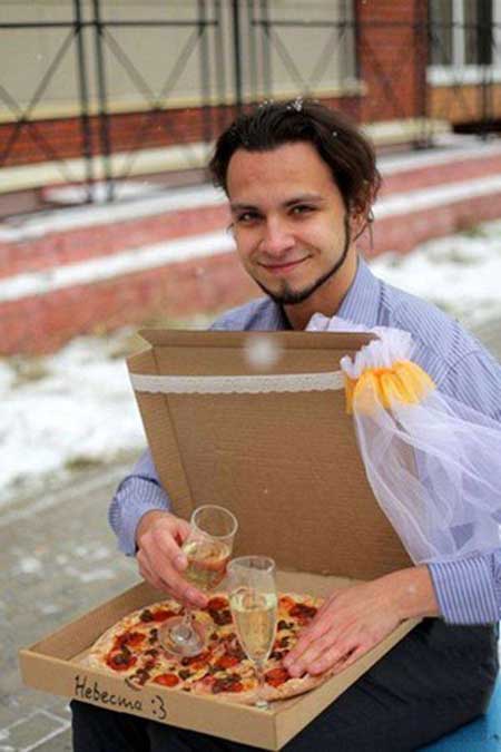 原标题:男子和披萨结婚:要终结单身 它很忠心