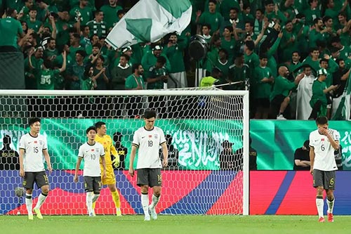丢球后国足继续进行调整,李源一和徐皓阳分别换下张玉宁和韦世豪,沙特领先且多一人情况下放慢进攻节奏,国足也稳住局面,由于沙特执行脑震荡换人,国足最后时刻也换上胡荷韬,但这对于进攻并没有太多帮助,最终国足0比1输球。