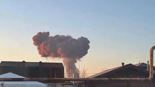 路透社和《每日电讯报》援引社交媒体“电报”上发布的视频称,袭击发生后,位于俄罗斯萨拉托夫州的恩格斯市上空腾起一朵巨大的蘑菇云。