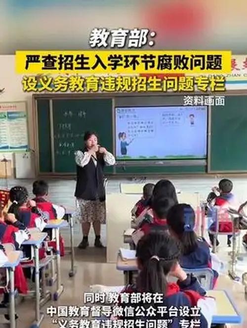 同时,教育部将在中国教育督导微信公众平台设立“义务教育违规招生问题”专栏,公开通报违规问题、接受社会监督。