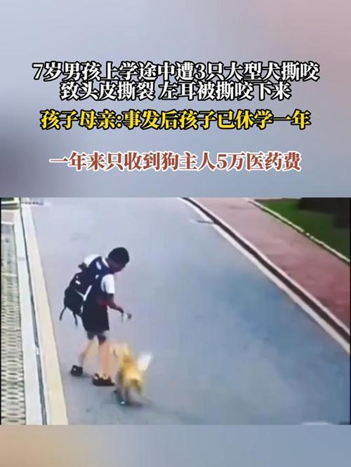 原标题:惨不忍睹!7岁男孩被3只大型犬撕咬:头皮撕裂,左耳咬掉......仅收到狗主人5万赔偿