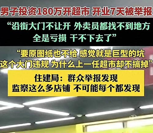 原标题:投资180万开业7天被举报,“大门”不让开,老板:干不下去了