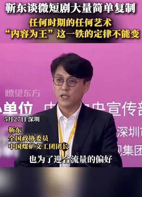 靳东提到,个人创作者也多为博取流量,在媒体平台上传各类擦边、猎奇、审丑等低俗内容,更有MCN机构作为推手暗地操纵,炒作负面话题,摆拍虚假事件,扰乱网络视听。