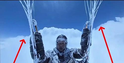 近日,55岁的彭先生在祁连山区域进行滑翔伞飞行时,意外被云吸至8000多米高空,全身结冰,所幸控伞安全降落。