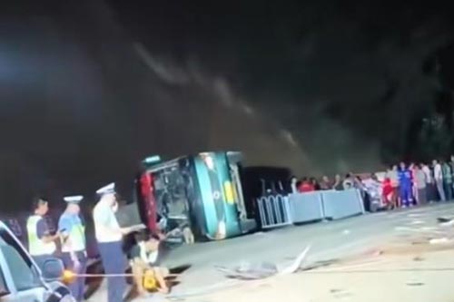 6月9日晚,广西贵港平南县平山镇境内发生一起大巴车与小车相撞事故。