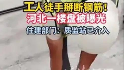 据此前报道,有投诉人反映称,河北霸州的国蕴城小区使用劣质钢筋施工,直径16毫米的螺纹钢竟然被工人徒手掰断。