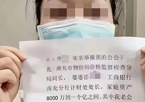 去年7月,女子曾某在网上实名举报自己的前公公婆婆:全屋名贵红木家具,字画收藏品无数,家庭资产近亿。今年6月,曾某再次发声,称举报一年未公布核查结果。