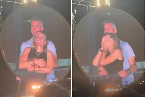Astronomer首席执行官(CEO)安迪·拜伦搂抱公司人力资源总监(HR)克里斯汀·卡伯特。 图源:美媒