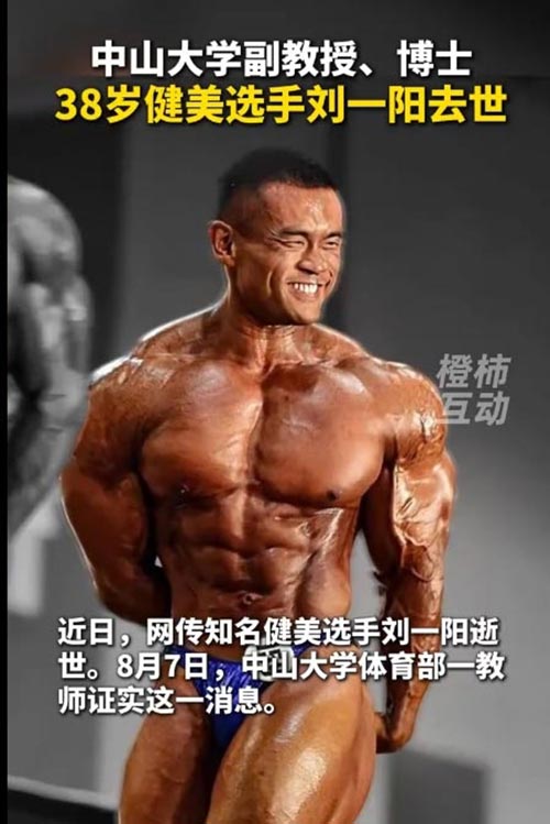近日,健美圈传出噩耗,知名健美选手刘一阳逝世。8月7日,中山大学体育部一教师证实,自己得到的消息是刘一阳已离世。