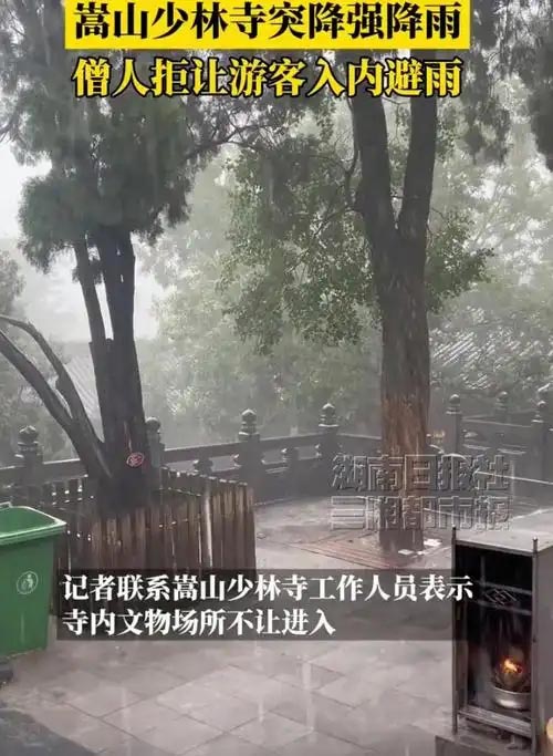 原标题:如何看待少林寺不让游客入殿内避雨,解释称文物场所不让进入?